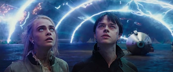 It is then that we are introduced to Sparky, a twenty foot tall robot who is carrying our two leads in its innards. They emerge naked from a misty silverwebbed orb and embrace to kiss, so I’m guessing Valerian and Xitan are no longer brother and sister. They are no longer tribal orphans either; rather, all the tribes have been merged but since the discovery of a powerful, unstable energy source the fate of the thousand planets is at risk.