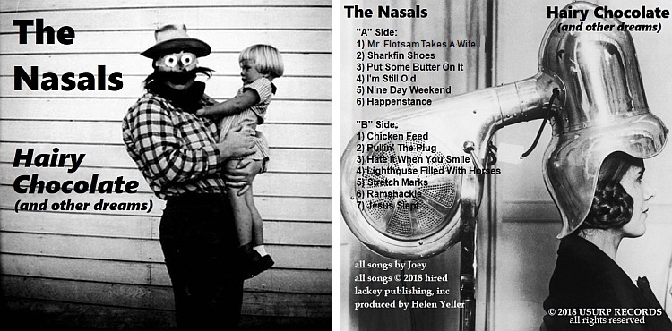With Hairy Chocolate (and other dreams), they and producer Helen Yeller have concocted a sonic bouillabaisse from a rainbow of textures and styles, a timeless pastiche of sounds and moods stitched together into a shambling jigsaw puzzle creature. With triple tracked harmonies and digital loops, Joey’s vocals dominate “Sharkfin Shoes” until guitarist Bruce Gossage burns him right out of the picture. The octave jumping “Happenstance” keeps things moving, paving the way for the junk funk of “Chicken Feed” and its stuttery horns. Drummer Nolan Brian jazzes up “Pullin’ The Plug” while bassist Abe Ruth makes “Ramshackle” slide.