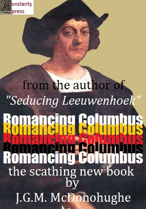 Romancing Columbus is the fifth “exposé” from the writer who was once named “the U.K.’s own Phyllis Diller,” is a two-time Dahmer Award winner and is also a two-timing cheat, at least according to ex-wives numbers two and three. McDonohughe’s style seems to be write first ask questions later which has landed him in hot water more than once, most recently when the nation of Bhutan took issue with his last book, Kissing Custer, and its allegations of the Sioux’s involvement in the great fire of Punakha. The author remains unflappable, however, promising even more surprises for the future. Indeed, his latest press release mentions the “inevitability” of an accepted connection between George Washington and Satanism.